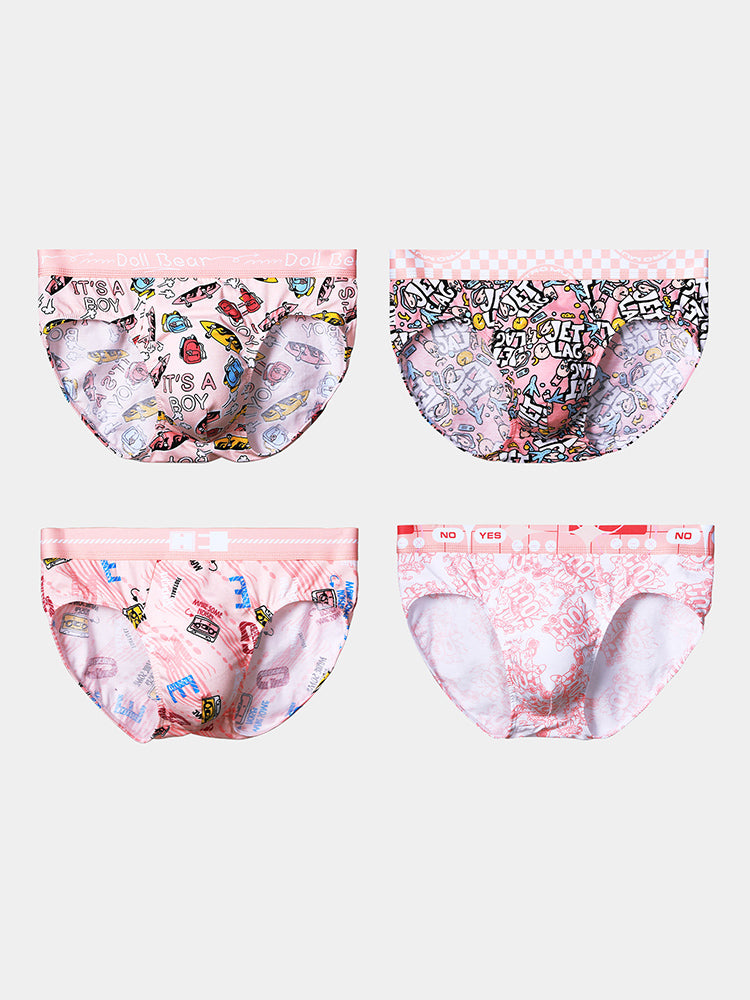 ORLVS 4 Pack Men's Antibacterial Cotton Breathable with Trendy Print Briefs GAY UNDERWEAR 2026 Spring