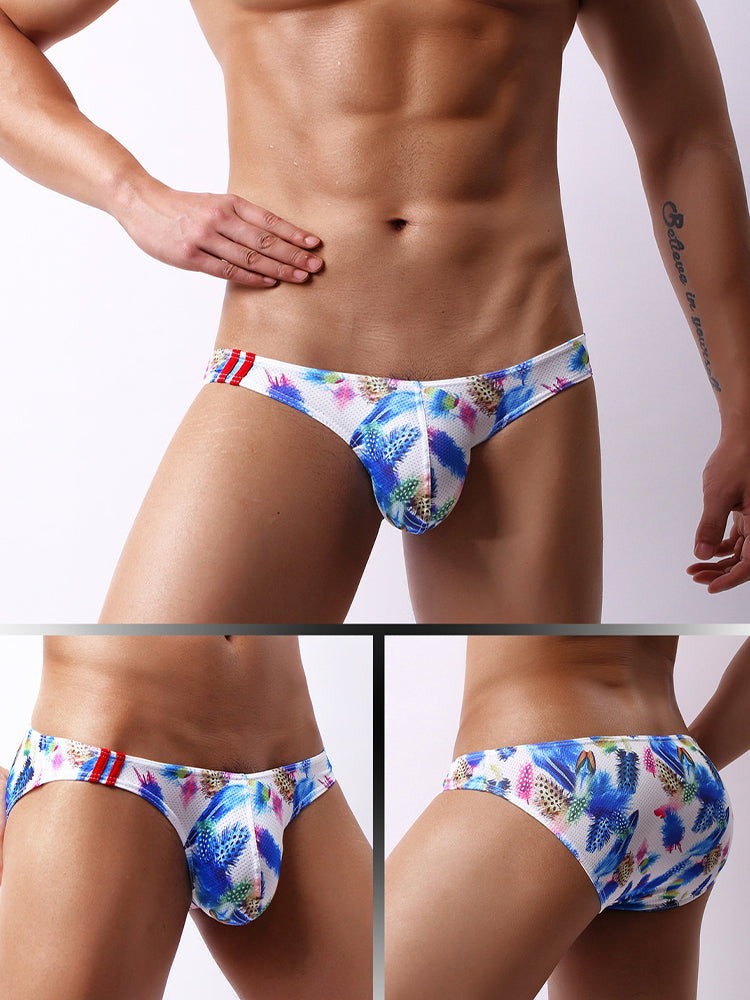 Printed fabric meets mesh panels in a low-rise brief designed for maximum airflow. A supportive U-pouch offers lift. while the breathable construction keeps you cool and fresh. Bold style meets functional comfort.