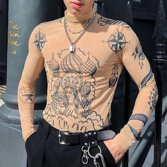 Men's long sleeve high neck print contrast top